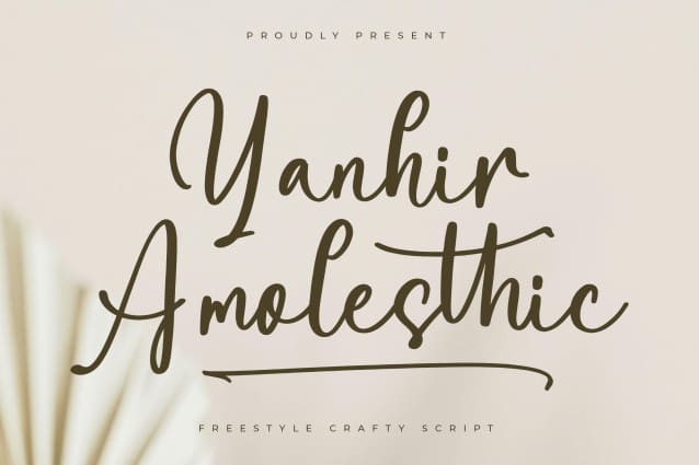 Yanhir Amolesthic Font – Freestyle Crafty Script , from Letterena, is a Luxury Script font, suitable for any projects such as: logos, branding projects, homeware designs, product packaging, mugs, quotes, posters, shopping bags, t-shirts, book covers, name card, invitation cards, greeting cards, label, photography, watermark, special events, and all your other luxury and beautiful projects that need a Luxury Script taste.