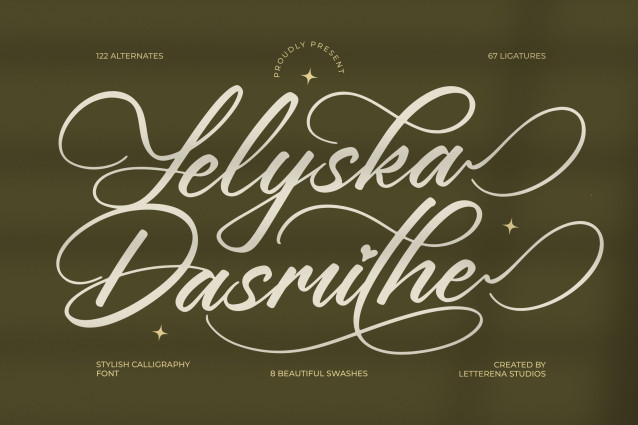 Yeliska Dasmithe – Stylish Calligraphy Font , from Letterena, is a Luxury Script font, suitable for any projects such as: logos, branding projects, homeware designs, product packaging, mugs, quotes, posters, shopping bags, t-shirts, book covers, name card, invitation cards, greeting cards, label, photography, watermark, special events, and all your other luxury and beautiful projects that need a Luxury Script taste.