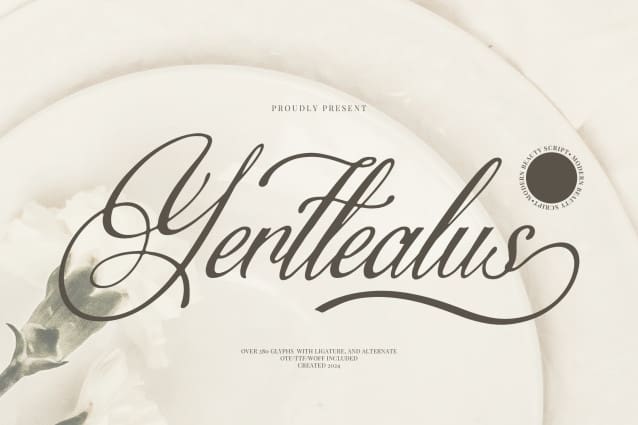 Yertlealus Font | Modern Beauty Script, from Denustudios, suitable for any projects such as: logos, branding projects, homeware designs, product packaging, mugs, quotes, posters, shopping bags, t-shirts, book covers, name card, invitation cards, greeting cards, label, photography, watermark, special events, and all your other lovely projects that need a beautiful script taste.