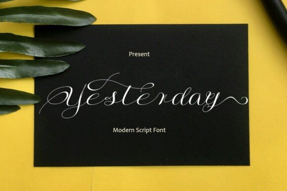 Yesterday Calligraphy Font is a modern calligraphy font with an irregular baseline, offering a trendy and feminine style. It looks beautiful on wedding invitations, thank you cards, quotes, greeting cards, logos, business cards, and more. Perfect for use with ink or watercolor projects, this script includes initial and terminal letters, alternates, ligatures, and full multilingual support.