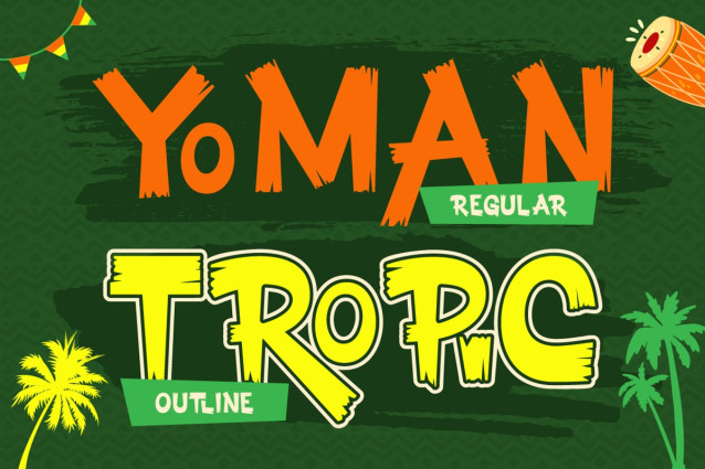 Perfect for music posters, festival flyers, summer branding, streetwear logos, album covers, packaging, social media graphics, and anything that needs a bold tropical twist. Yomanica is not just a font, it’s a vibe. Turn up the volume, feel the rhythm, and let your design groove with Yomanica.