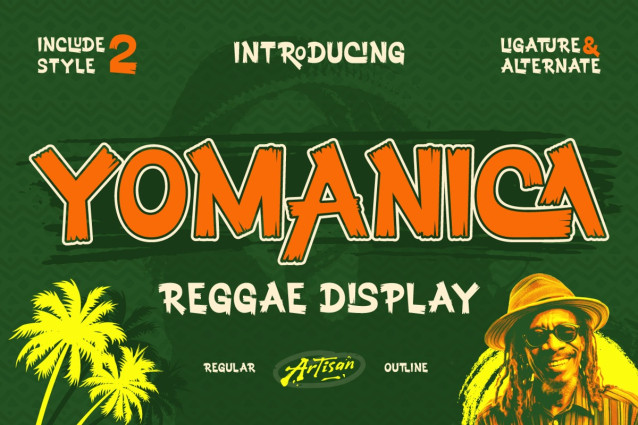 Yomanica Font is a bold reggae display font that brings sunshine, rhythm, and good vibes straight into your designs. Inspired by reggae culture, tropical visuals, and laid-back island energy, Yomanica is made to stand out loud, fun, and full of character.
