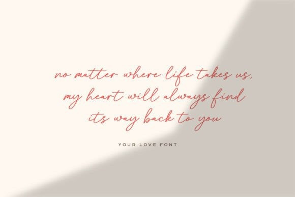 Your Love Handwriting Font is a romantic handwritten script designed for weddings and love-themed projects. It features elegant swashes at the start and end of strokes, along with beautiful alternate characters that add charm and variety. Its most unique detail is the heart-shaped connecting swashes, giving every word a sweet and enchanting feel.