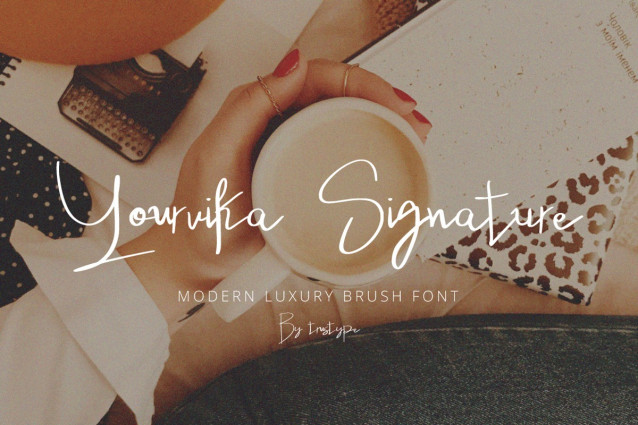 Yourvika Signature Font with a handmade Signature style, decorative characters and a dancing baseline! Yourvika Signature with 130+ glyphs. The alternative characters were divided into several Open Type features such as Swash, Stylistic Sets, Stylistic Alternates, and Ligature. The Open Type features can be accessed by using Open Type savvy programs such as Adobe Illustrator, Adobe InDesign, Adobe Photoshop Corel Draw X version, And Microsoft Word. And this Font has given PUA unicode (specially coded fonts). so that all the alternate characters can easily be accessed in full by a craftsman or designer.