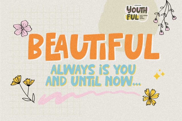 Youthful Display Font, This is Kids Display Font Simple. Are cheerful, easy-to-read typefaces designed to capture a youthful, playful vibe. This font is perfect for making a strong statement in your designs.