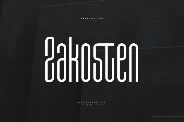 Zakosten Font is a display corporate font that comes with a Monospaced Style. suitable for product, branding, social media, logotype and so on. contains standard English letters, numbers, punctuation, and several accents that support multilingualism.