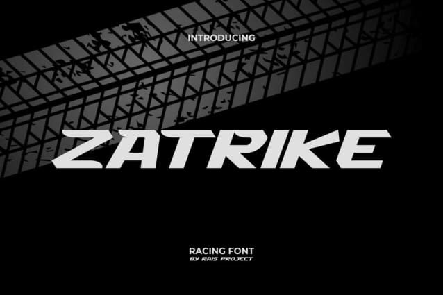 Zatrike Font is an impressive cool racing display font with a modern look. This font has bold characters that make it look awesome. It will be good for any designs, such as stationery, advertisement, brand image, marketing material, cover, custom design, invitation, label, menu, poster, product packaging, quotes, website page, and more!