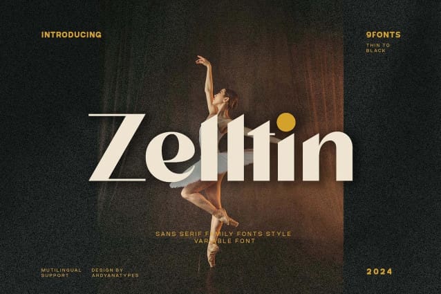 With 9 font styles ranging from Thin to Black, along with advanced variable font features, Zelltin offers incredible flexibility for various typographic projects. Whether you’re working on branding and logo design, editorial layouts, movie titles, or advertisement posters, this font ensures your work stands out with elegance and professionalism.