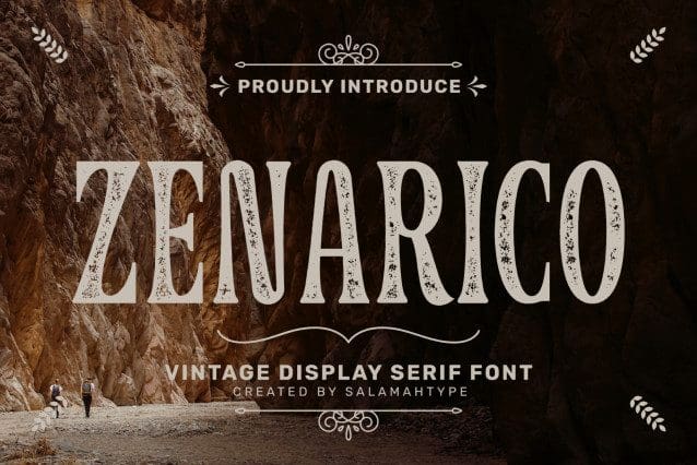Zenarico Vintage Font is a serif font with a vintage or classic style, Zenarico consists of regular and stamped or textured versions, this font is suitable for application to your logos, labels, posters or any product that wants a classic look.