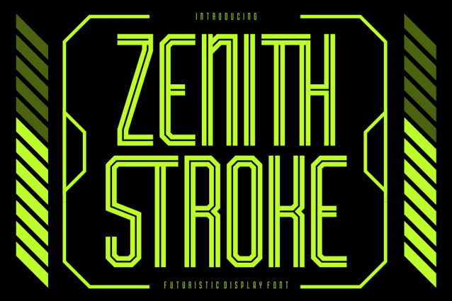 Zenith Stroke is perfect for branding, product packaging, sci-fi movie titles, tech startups, esports, and cyber-inspired designs. The high-tech, aerodynamic structure of the font makes it suitable for projects that require a sleek, innovative, and modern touch. Whether you’re working on a futuristic user interface, digital advertisements, or creative typography projects, this font will instantly elevate your design. The glowing effect on a dark background enhances its futuristic and space-age appeal, making it a top choice for those looking to create an immersive digital experience. If you’re seeking a bold, stylish, and futuristic display font, Zenith Stroke is the perfect addition to your creative arsenal.
