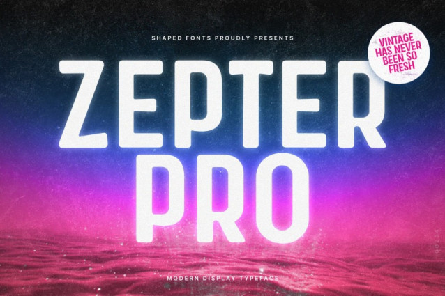 Zepter Pro Font is a modern display typeface that blends vintage character with contemporary clarity. Playful yet confident, it’s designed to perform across logos, headlines, and bold brand moments. Carefully balanced letterforms ensure strong impact at large sizes while remaining clear and readable when scaled down. A timeless typeface built to outlast trends.