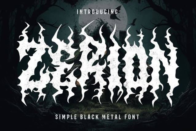Zerion Black Metal Font, our bold and powerful font inspired by the intense and dark world of black metal music. With its sharp and angular design, Zerion is perfect for creating designs that capture the essence of the black metal scene.