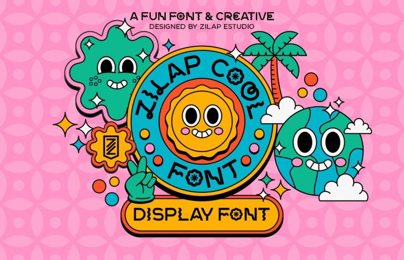 Zilap Cool Font is a fun and unique font, which is composed of a varied design of shapes between letters that do not follow a pattern and this same feature is what makes it very peculiar and different. Perfect for colorful, contemporary, daring brands with a lot of personality.