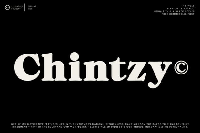 ZT Chintzy Font pays homage to the expressive, soft, and rounded serif typography of the 1960s and 1970s era. Its gentle and captivating serifs evoke warmth and nostalgia reminiscent of that era’s typefaces. As a bold vintage-style serif font, “ZTChintzy” boasts strong characters and subtle features. Equipped with alternatives, stylistic variations, and several standard ligatures, the font offers extensive versatility. With 17 styles available, including 8 different weights, “ZTChintzy” caters to a wide range of design needs.