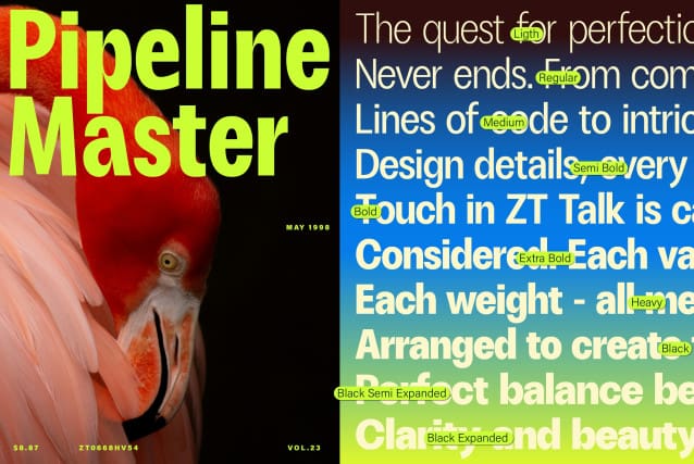 The quest for perfection never ends. From complex lines of code to intricate design details, every touch in ZT Talk is carefully considered. Each variant, each weight – all meticulously arranged to create the perfect balance between clarity and beauty.