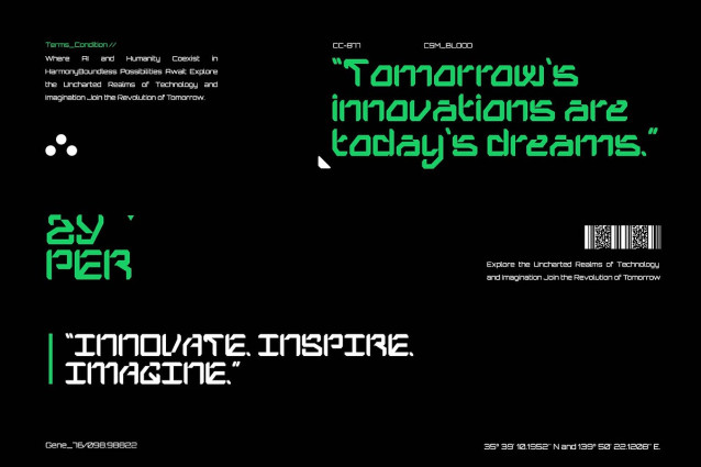 Zyper Futuristic Font a touch of futuristich and tech to your designs with this meticulously crafted font collection. Perfect for adding a Sci-fi vibes to your branding, packaging, logos, and more.